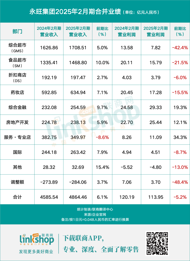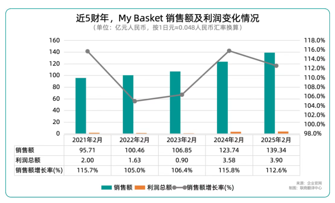 截至2025年2月财年,永旺集团营业收入首次突破10万亿日元(约4864亿人民币),但营业利润却同比下滑5.2%,呈现“增收不增利”的态势。在这样的背景下,My Basket的表现显得格外亮眼。