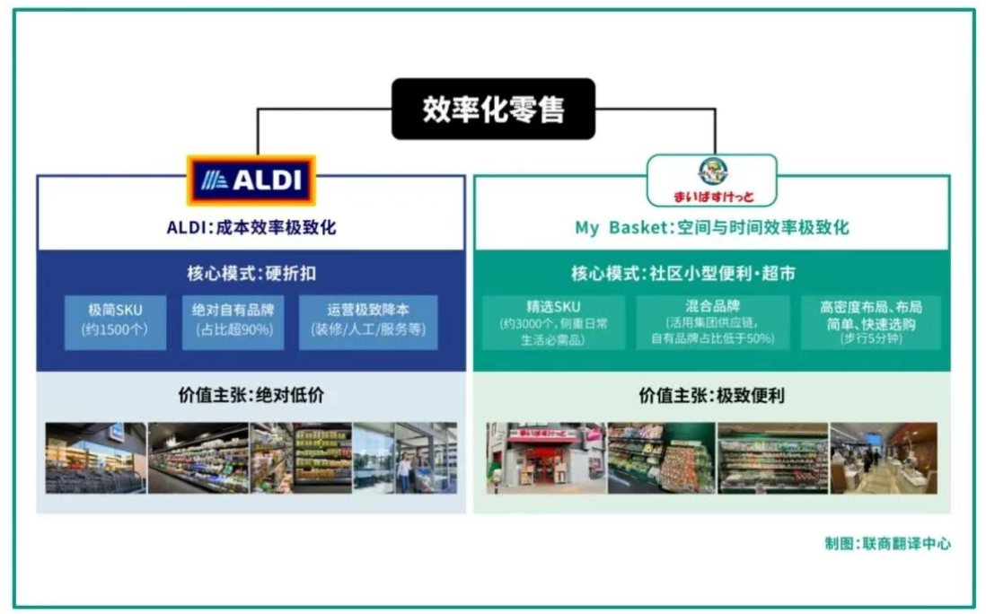 但本质上,ALDI与My Basket代表了效率化零售的两种不同路径。ALDI通过极简SKU、超高比例自有品牌和极限成本控制,追求绝对低价,其核心是商品效率的极致化。而My Basket的模式核心并非追求最低价格,而是空间与时间效率的极致化,打造一个家门口的生活必需品商店。