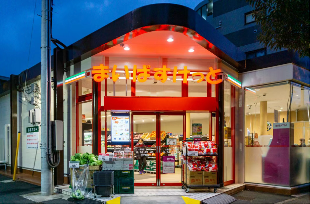 而在日本东京,这一幕其实早已悄然发生——大型零售集团永旺早在20年前就布局了小型社区超市业态,开出了第一家My Basket(中文译:我的菜篮子)。