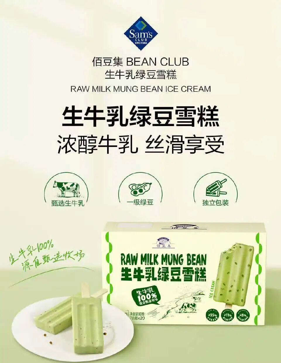 2025年3月,伊利、山姆共创的“生牛乳绿豆雪糕”实现首批量产,并迅速搬上山姆货架。