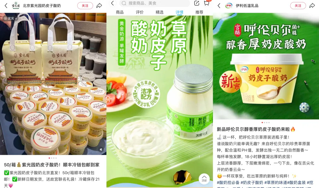 此外,2024年年初开始,以北京紫光园为起点,奶皮子酸奶也呈现出“井喷”态势,从三元、天润、兰格格等区域乳企到伊利、蒙牛、君乐宝等乳业巨头,以及盒马、叮咚V5等渠道品牌均推出了奶皮子酸奶,让”奶皮子“三个字在消费者端的认知进一步普及。