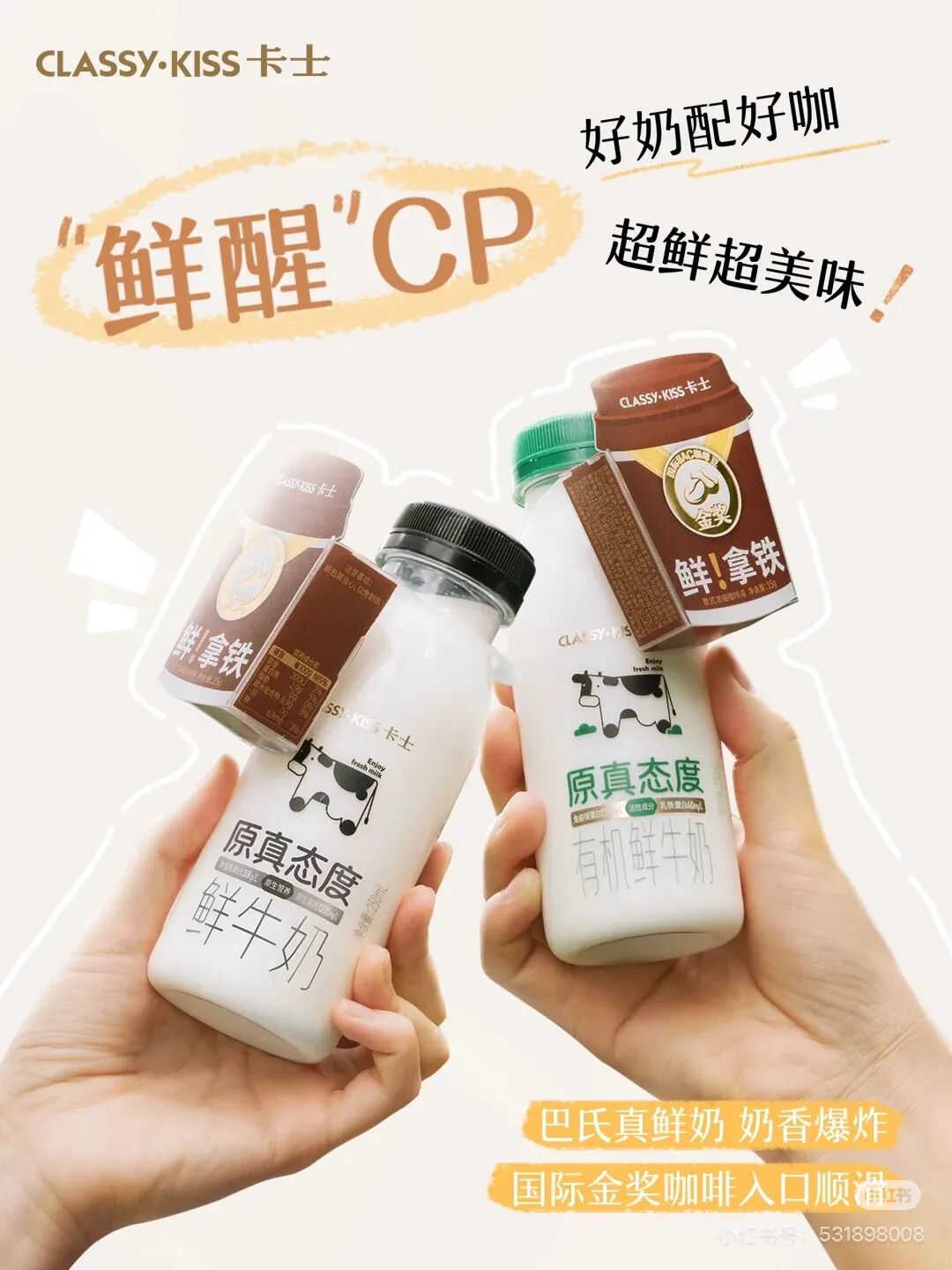 而卡士鲜牛奶也主要针对办公、出差、会议等场景推出了奶香拿铁,与金典的纯绿色不同的是,卡士的咖色色系非常适合打工人办公场景,极具商务风。