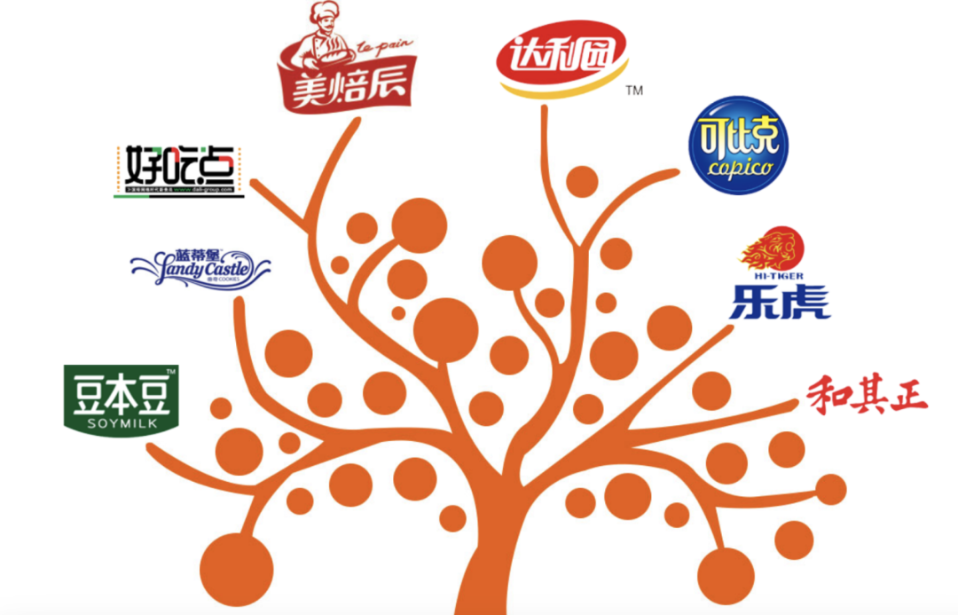 其“后发先至”的爆款逻辑堪称行业典范:瞄准成熟品类,以高性价比+明星营销快速破局,先后打造达利园蛋黄派、可比克薯片、和其正凉茶、好吃点、乐虎等核心品牌。2017年后顺应健康趋势,推出豆本豆、美焙辰等,形成7大品牌均跻身行业前三的矩阵。