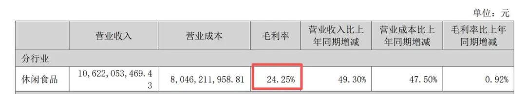 33.7%的毛利率在业内也堪称亮眼表现。这一数字显著领先于三只松鼠、良品铺子等传统零食企业,展现出其独特的盈利优势。