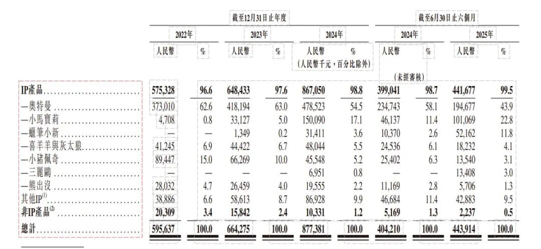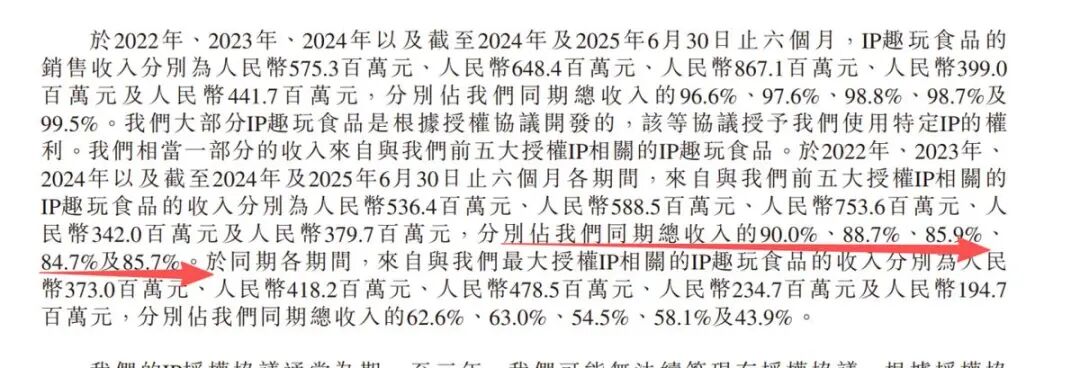 据招股书披露,公司的营收结构呈现出显著集中度,前五大IP贡献了超过85%的收入来源。