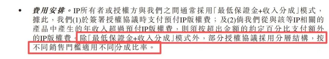 更苛刻的是授权协议中的“最低保证版权费”条款,哪怕产品卖不动,这笔钱也一分不能少,部分授权协议还采用了分层结构,不同销售门槛分成比例不同