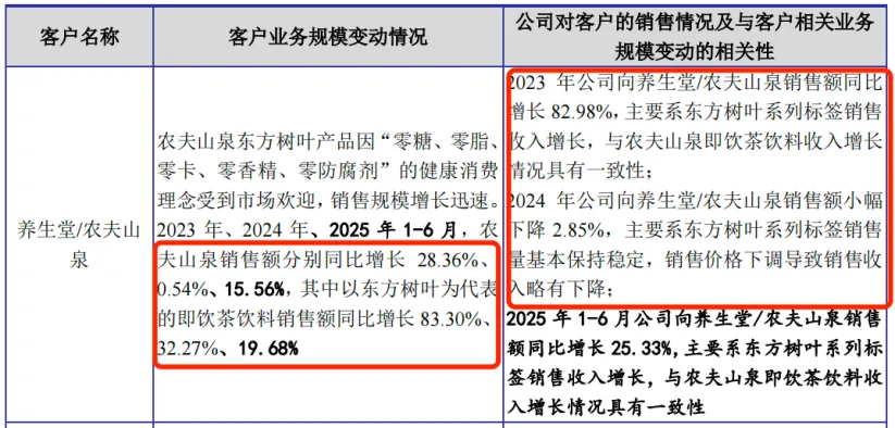 在与农夫山泉的合作中,2023年,农夫山泉旗下东方树叶销售额同比增长83.30%,连带着江天科技的销售额同比增长82.98%。不过,在2024年,东方树叶销售额同比增长32.27%的时候,江天科技对农夫山泉的销售额却小幅下降2.85%。