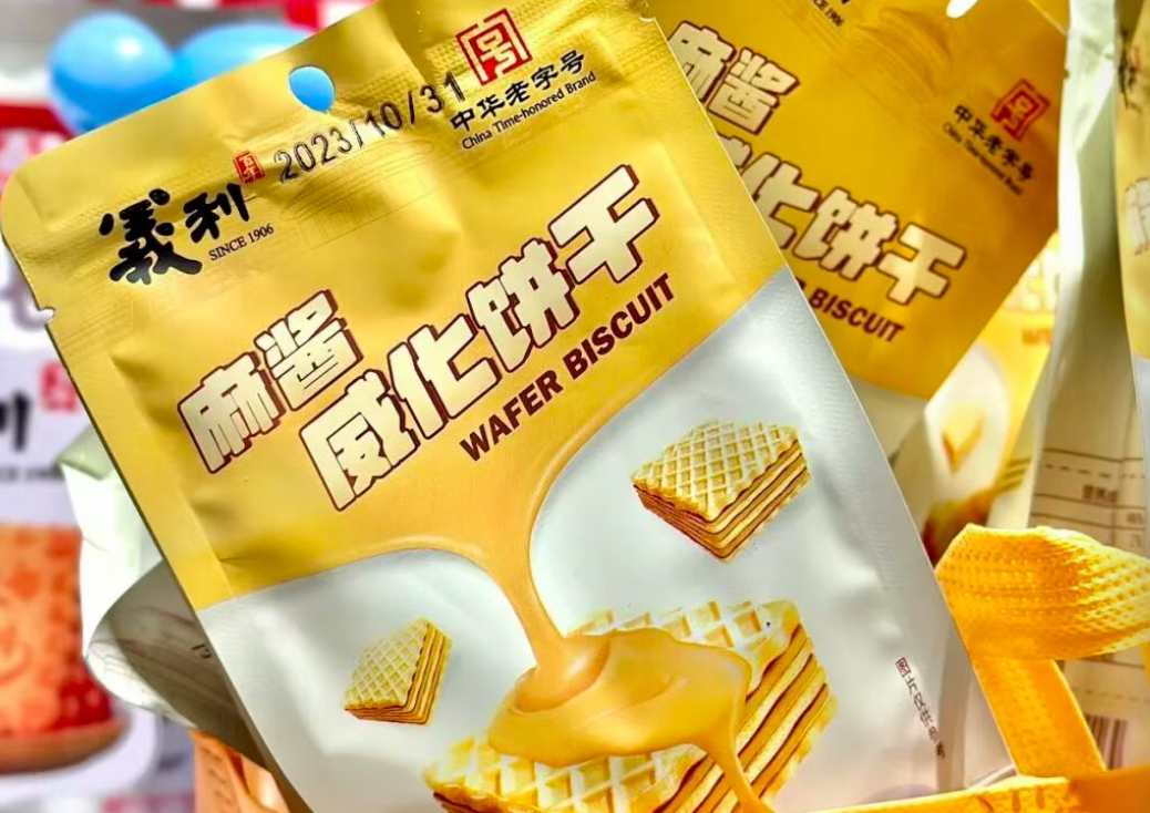 两大百年老字号,一个做糕点,一个做酱料,联手把麻酱糖饼的风味塞进了威化饼干里。