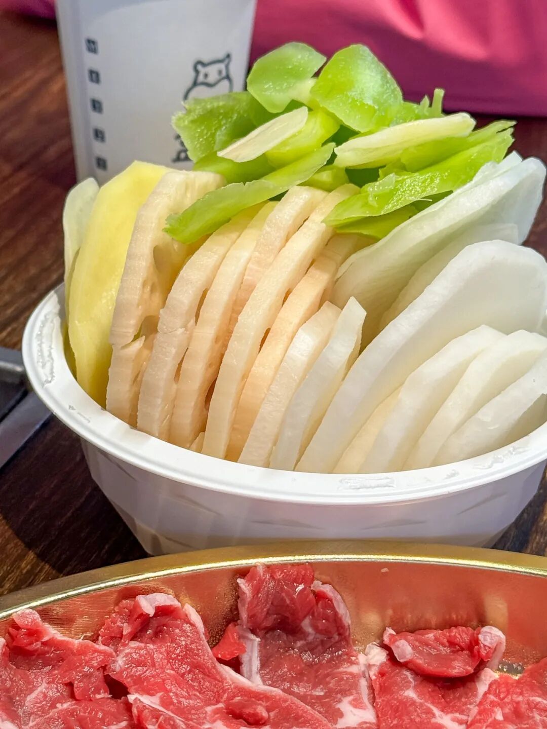 这天傍晚,当我把我们一家三口这顿火锅菜品过完收银自助后,198块的价格直接让我倒吸一口凉气——这可是包含了锅底、2种海鲜、鲜牛肉拼盘、蔬菜、小料、进口啤酒的三人份量。