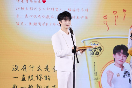 发布会现场,康师傅老母鸡汤面品牌代言人周深惊喜登台,将气氛推向高潮。通过回顾与品牌之间的暖心故事——无论是巡演过程中富有创意、暖心的应援,还是与品牌共同为大众送上温暖旋律《纯鲜好鸡汤的秘密》,都生动诠释了这碗鸡汤已成为浸润日常、温暖人心的陪伴。