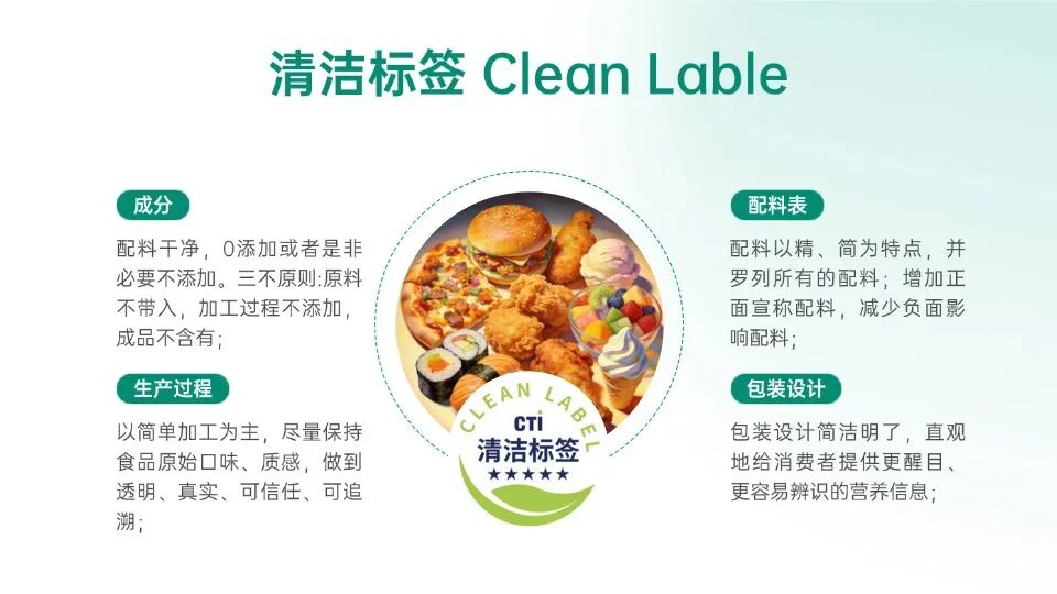 “清洁标签”(CleanLabel)源于欧美市场,核心要义可概括为三点:成分极简、来源天然、信息透明,通俗来说就是配料表中尽可能使用天然、熟悉的简单成分,避免或减少人工添加剂、防腐剂等复杂化学成分。