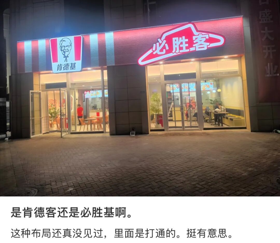 最近,社交平台上出现了一个让网友集体懵住的新物种——肯德基×必胜客“双子星门店”。