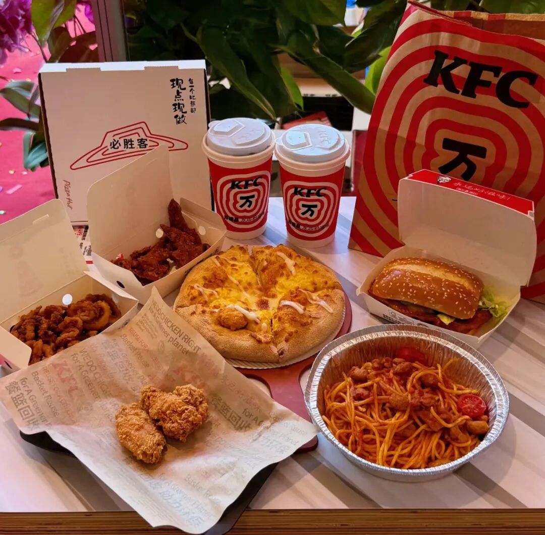 门店内部是完全打通的,两个品牌的厨房、炸炉、烤箱、冷藏设备全部相连,甚至连员工都经过跨品牌培训,一个人既能出肯德基的吮指鸡,又能给必胜客做披萨,一套班子、两块牌子,一个团队,两套菜单,一次开店,两个品牌就落地。