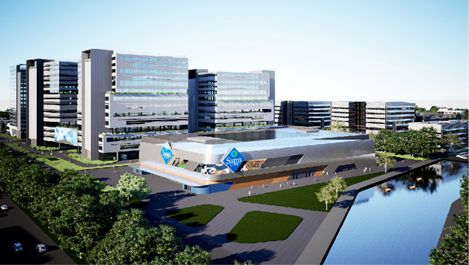 荔湾山姆位于花地大道南657号的岭南V谷-广州国际智能科技园内,项目占地近2万㎡。其中商业裙楼面积达1.5万㎡,拥有9米高的仓储式购物空间,同时配备了超1000个专用停车位。
