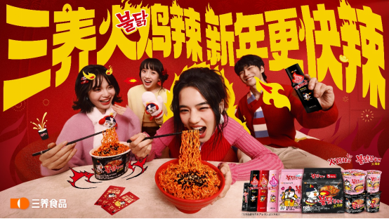 三养食品此次精准捕捉并融入了春节背后的文化内涵与情感需求。洞察到春节对现代人而言,既是从全年忙碌中暂停休整的节点,更是与家人亲友相伴的温暖时刻。从节前“提前囤点过年吃”的筹备心态,到节中“换换口味解腻”的互动需求,三养食品要让火鸡辣味成为贯穿不同场景的情感纽带。节前,一抹够劲的“辣”成为年轻人放松身心的快乐宣泄;节中,火鸡辣味则化身为拜年聚会的餐桌话题,无论是年夜饭的创意搭配还是朋友欢聚的增味佐料,都成为促进分享、点燃气氛的社交催化剂,强化“辣味”与“热闹团圆”的情感关联。