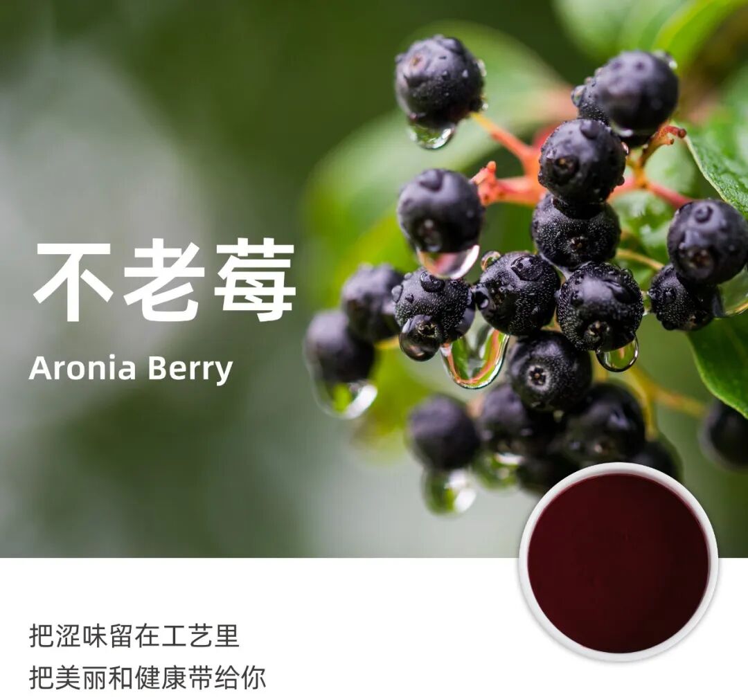 不老莓,又名野樱莓,学名黑果腺肋花楸,是一种在北美和东欧地区拥有悠久食用历史的超级水果,因其花青素含量极高而被熟知,但也因含有高浓度抗氧化剂,食用时带有明显酸涩感。