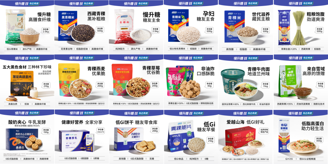 依托硬核研发实力,品牌已陆续研发推出三代青稞系列产品,涵盖青稞原料粮食品(青稞米、青稞粉、珠峰天米、青稞挂面等)、青稞休闲食品(青稞高纤粉、青稞黄精茶、青稞燕麦优果脆、青稞草莓优谷脆等)、青稞低GI认证食品(青稞米饭、青稞黄精米饭、青稞脆片、青稞珍珠米等)全品类。所有产品均以西藏青稞为核心原料,青稞添加量均超20%,奇正青稞始终致力于让营养健康的西藏青稞食品,走进千家万户的普通餐桌。