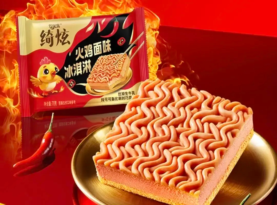 5、舌尖上的冰火两重天!伊利绮炫上新「火鸡面味冰淇淋」
