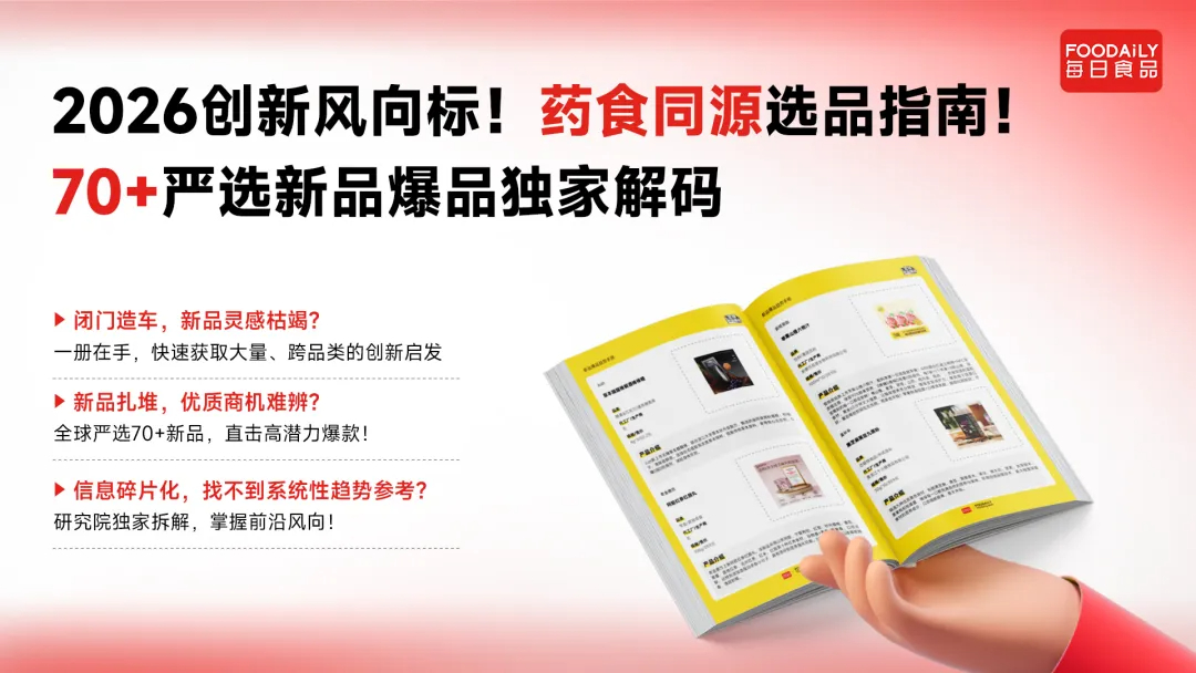 2025年以来的药食同源赛道,正以前所未有的速度跑出诸多爆款。过去一年,Foodaily深度追踪了70+药食同源新品爆品,访谈数十家头部企业产品决策人与渠道决策人后发现:这条赛道已经从 “要不要做” 的趋势共识,全面进入 “怎么做” 的系统落地阶段 。