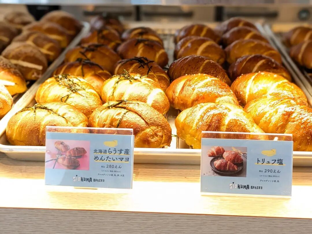 「SiOKUMA BAKERY」也是在品牌成立 28 周年之际,基于店里的盐面包很受欢迎而推出了这个品牌,前面提及的一些经典风味都有售卖,此外使用区域特色食材的明太子盐面包也反响不错。