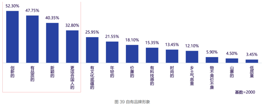 “创新的”、“有品质的”、“新颖的”、“更适合国人的”,这些溢美之词,均是受访者提及最多的自有品牌形象。