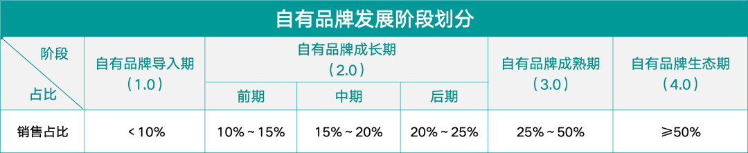 自有品牌4.0为自有品牌生态期,销售占比≥50%,自有品牌成为企业核心收入来源。