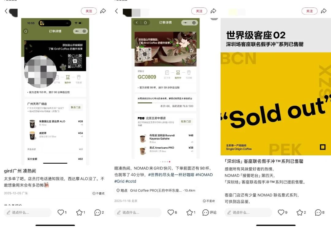 在此之前,其携手全球TOP7咖啡烘焙商NOMAD,在北京及深圳的世界级客座活动中,NOMAD从西班牙带来的珍稀咖啡豆也是使用“假手冲”出品。消费者在社交平台反馈,现场也得算着时间排号点单,最后产品均提前售罄。