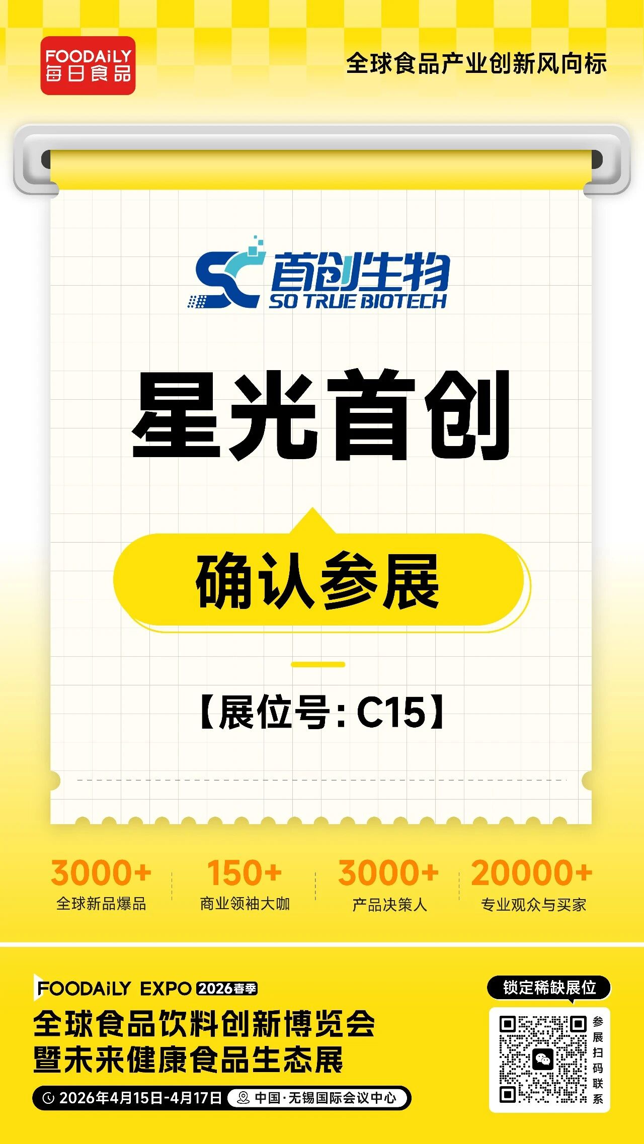 2026 Foodaily创新博览会,星光首创将携旗下明星产品亮相无锡国际会议中心,C15展位,邀业界同仁共探健康食品创新机遇,共启品质食安新未来!
