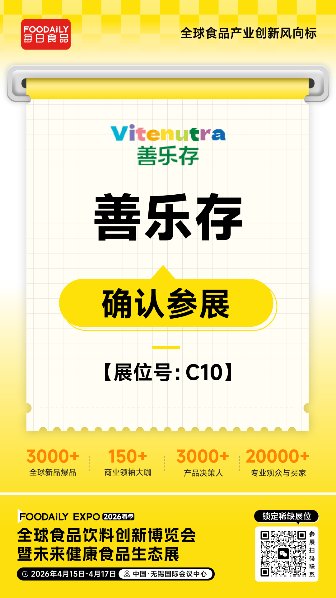 2026 Foodaily创新博览会,善乐存将携旗下优质产品亮相无锡国际会议中心,C10展位,邀各界伙伴共探健康产业新机遇,共筑自然健康新生活,共探千亿功能饮品蓝海的新财富密码!