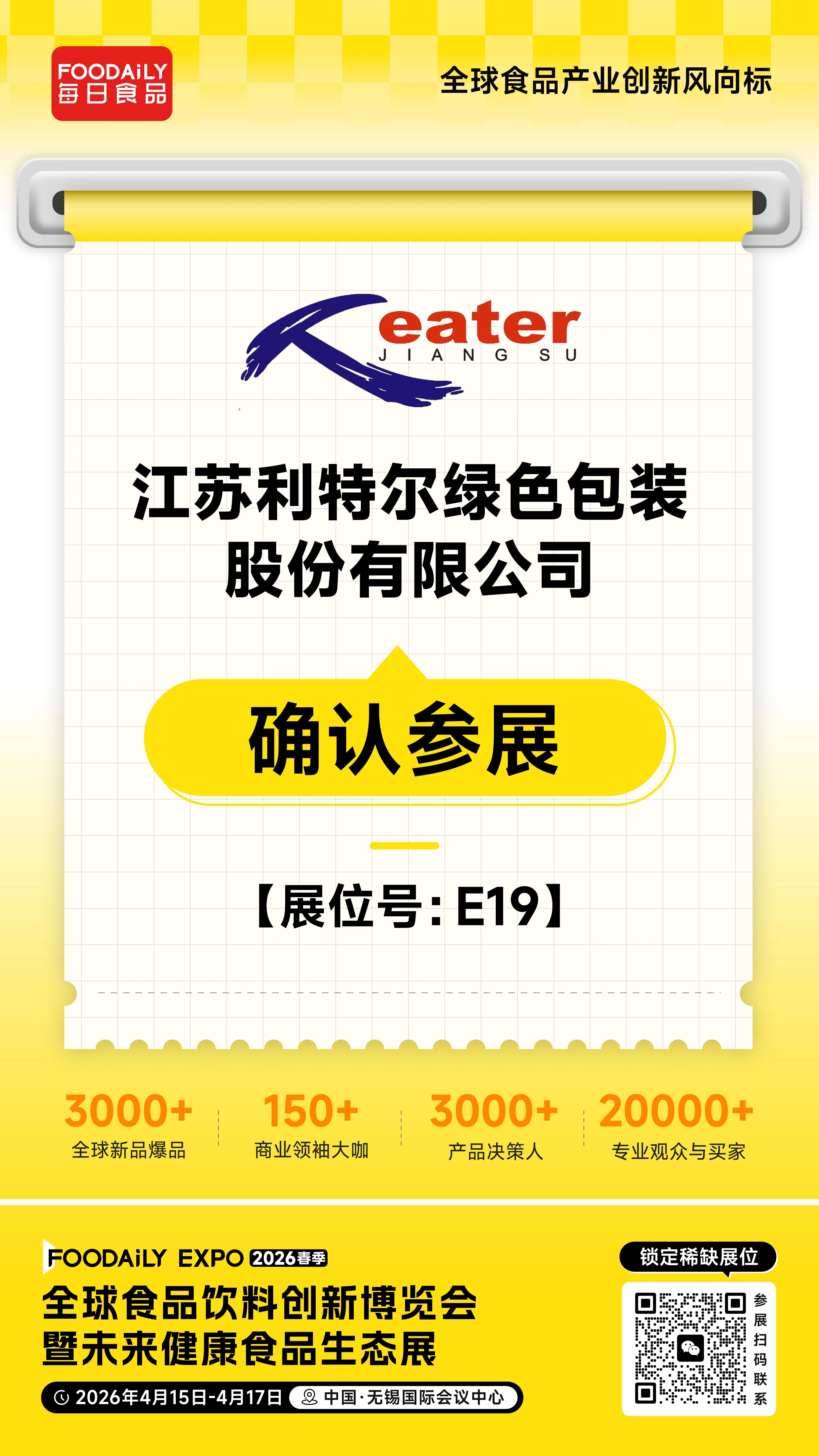 2026 Foodaily创新博览会,利特尔将携旗下全矩阵绿色包装解决方案亮相无锡国际会议中心,E19展位,邀各界伙伴共话可持续包装新未来。