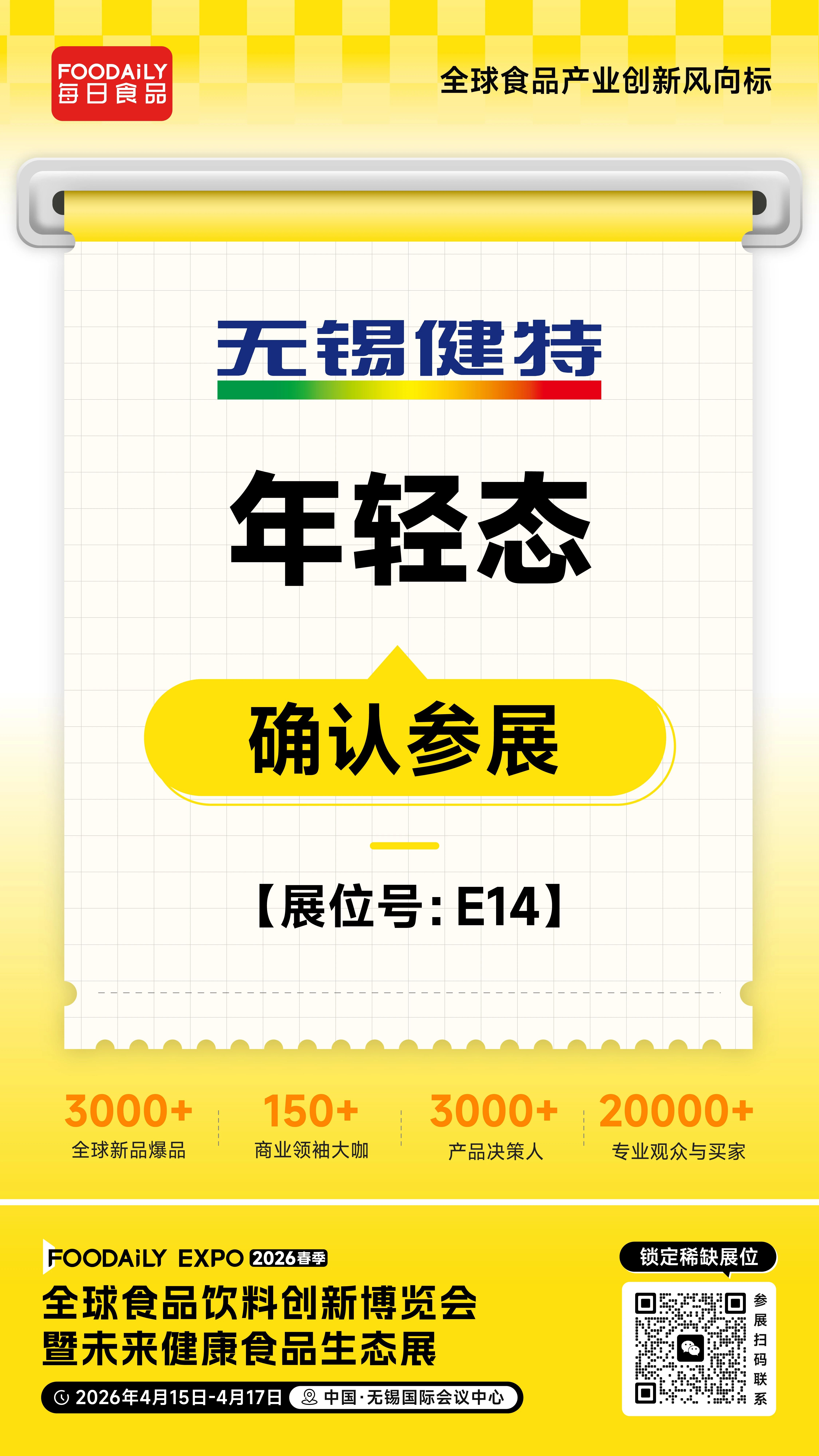2026 Foodaily创新博览会,无锡健特将携旗下明星产品与一站式OEM/ODM服务亮相无锡国际会议中心,E14展位,邀业界伙伴共探健康食品创新机遇,共筑产业新未来!