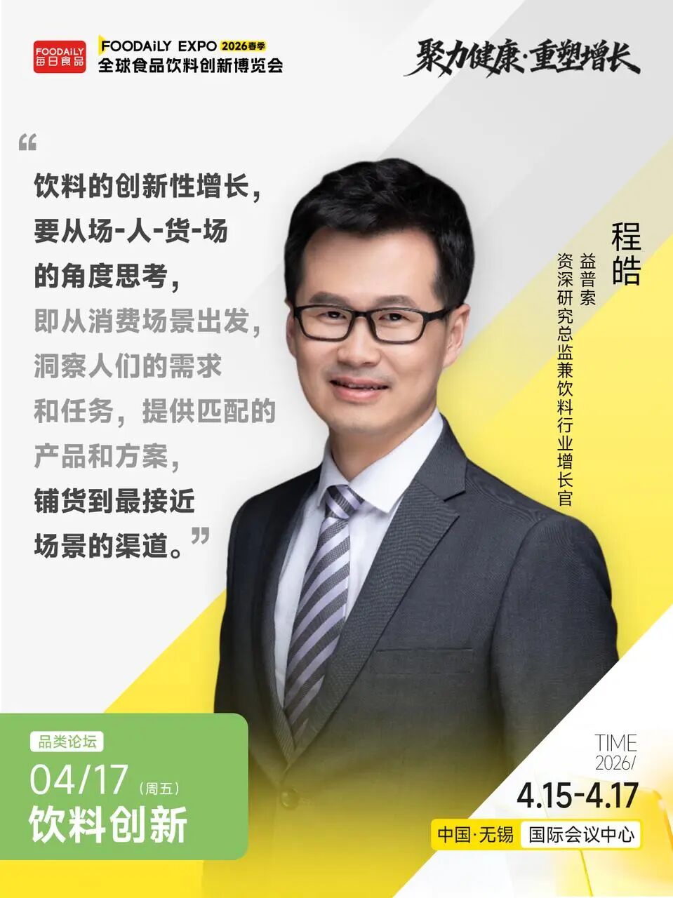 益普索饮料行业增长官、资深研究总监程皓,将在本场品类论坛开场带来深度洞察,从数据与趋势出发,为饮料品类的“无限细分”之路勾勒清晰地图。