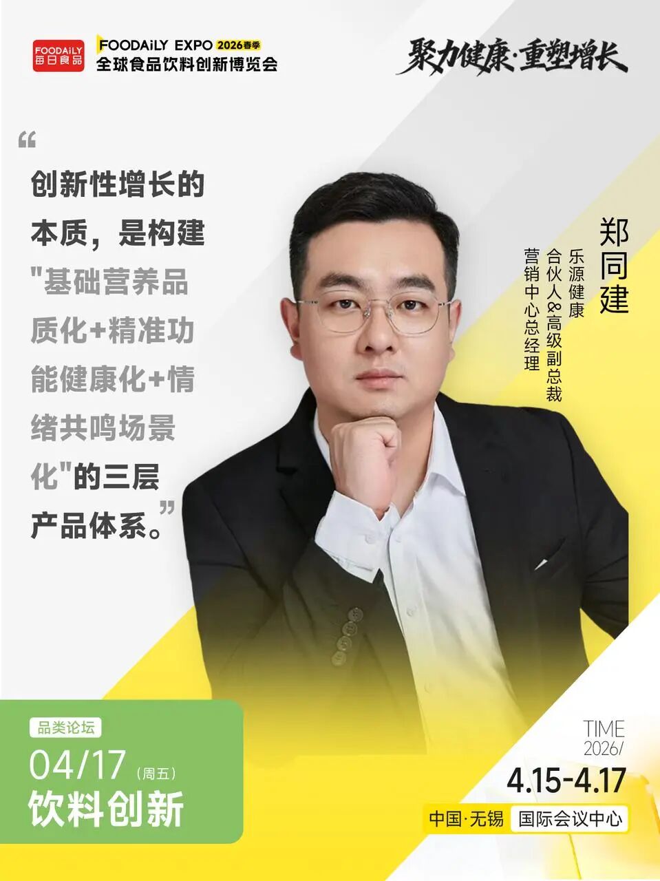 乐源健康合伙人郑同建将结合与多家头部渠道深度共创的实战经验,分享果蔬汁在原料选择、功能成分与消费场景之间的创新逻辑,拆解渠道爆品背后的共创增长法则。