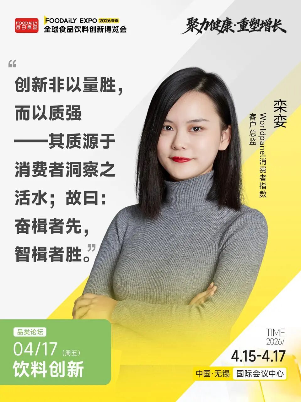 以「聚力健康·重塑增长」为主题,2026 Foodaily全球食品饮料创新博览会将于4月15日-17日在中国·无锡国际会议中心举行。我们将集结头部品牌、新锐力量与渠道操盘手,从功能分化、创新机制、品类重构三大维度,深度洞察潜力品类与创新机制,一同探讨如何在高度内卷的竞争中,找到一条清晰的差异化增长路径。