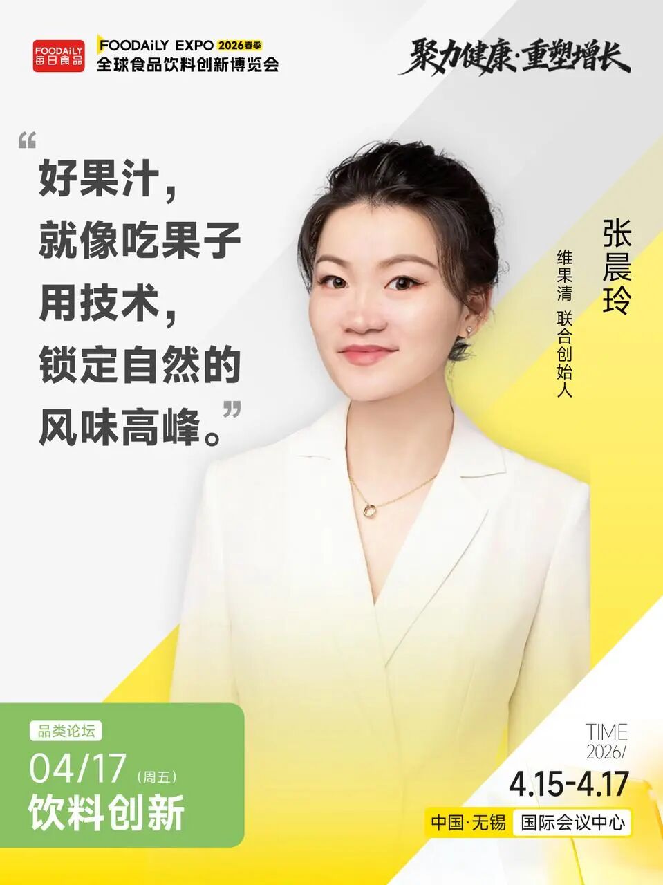 在控糖、轻养生与情绪健康成为主流需求的背景下,果蔬汁正从天然饮品进化为轻功能解决方案。药食同源与中式养生理念也正在通过HPP冷压技术焕发新生。从果蔬汁走向“果蔬+功能”,维果清联合创始人张晨玲将分享如何在原料选择、草本搭配与配方设计中实现功效表达,同时兼顾口感与大众接受度?