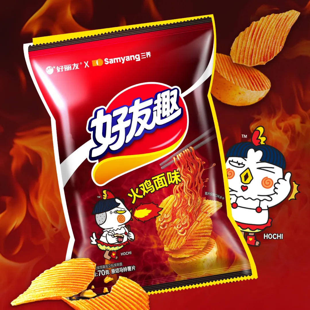 3、两大韩企强强联手!好丽友×三养推出「火鸡面味 好友趣」原切马铃薯片新品