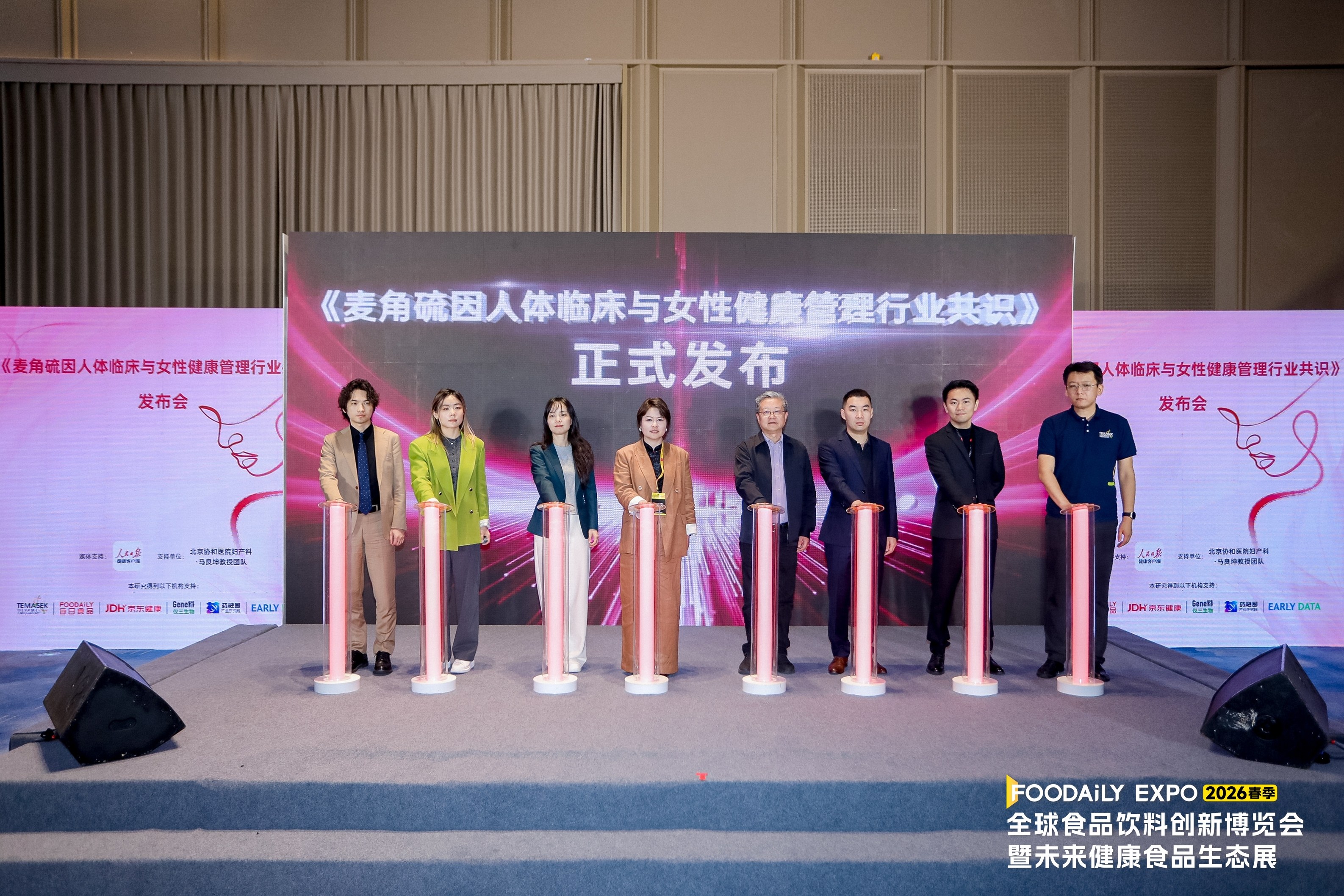 4月16日,无锡2026 Foodaily全球食品饮料创新博览会现场,《麦角硫因人体临床与女性健康管理行业共识》正式发布。《麦角硫因人体临床与女性健康管理行业共识》由仅三生物联合“产学研医”四方,携手北京协和医院妇产科·马良坤教授团队、淡马锡生命科学研究院、京东健康、人民日报健康客户端、Foodaily每日食品等多方权威力量,解锁麦角硫因在女性全生命周期健康管理中的核心价值,为中国女性健康事业注入新的科学力量。