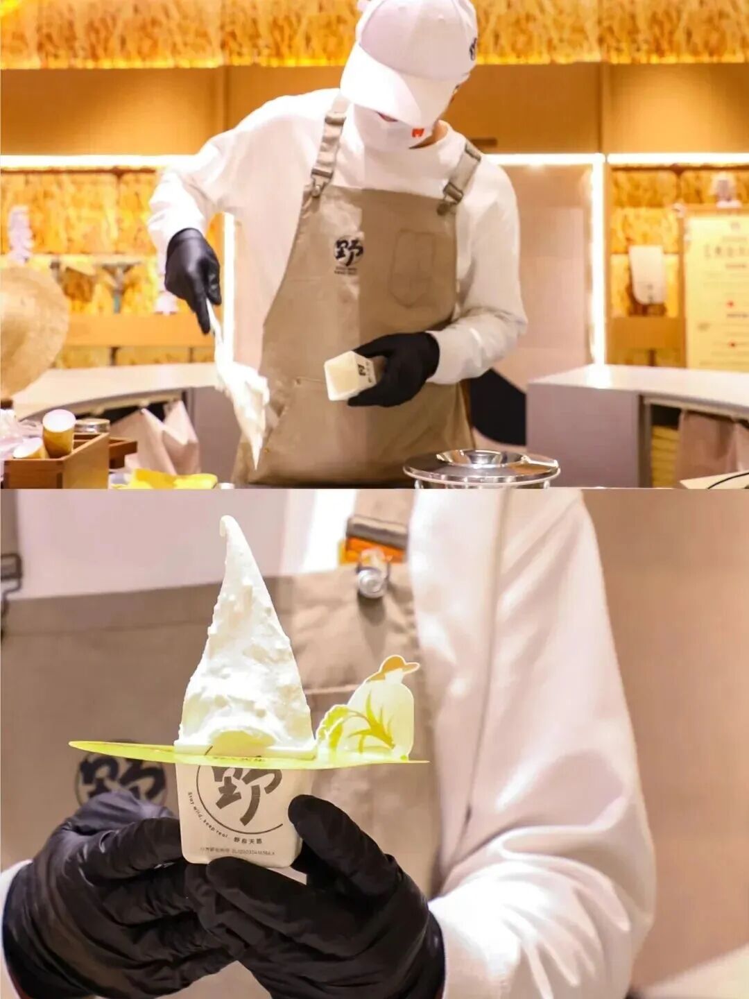 在旗舰店亮相之前,“冰淇淋+”的探索已经在野人先生内部持续了很久。“冰淇淋加上舒芙蕾、汉堡、酸奶……”崔渐为说,“你都想不出我们没测试过的组合。”