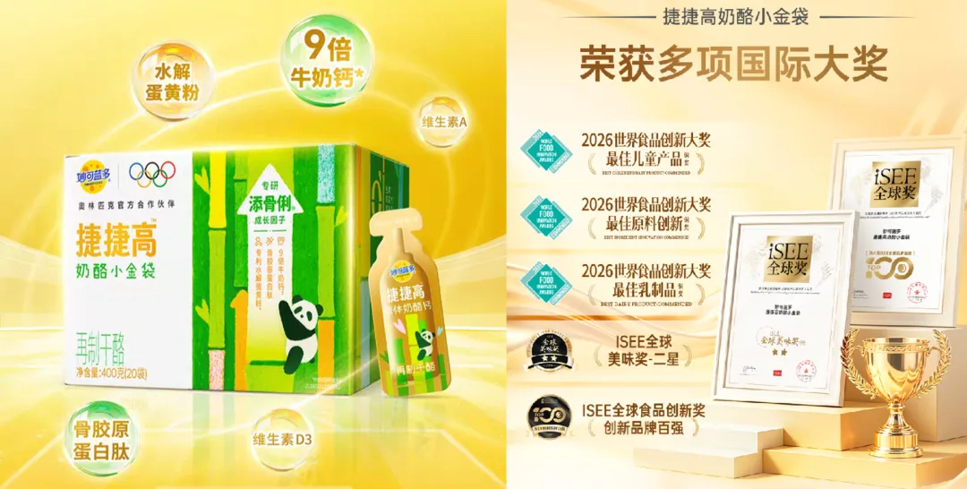 3、加码儿童功能奶酪赛道!妙可蓝多上新「捷捷高奶酪小金袋」