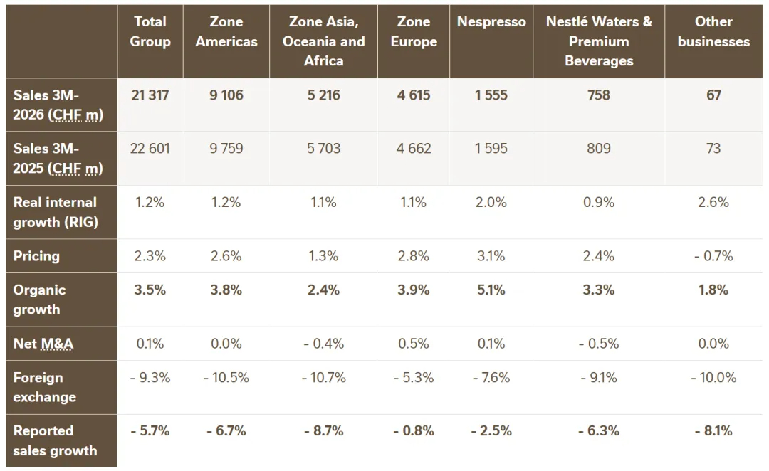 7、有机增长率达3.5%!雀巢发布2026年一季度财报