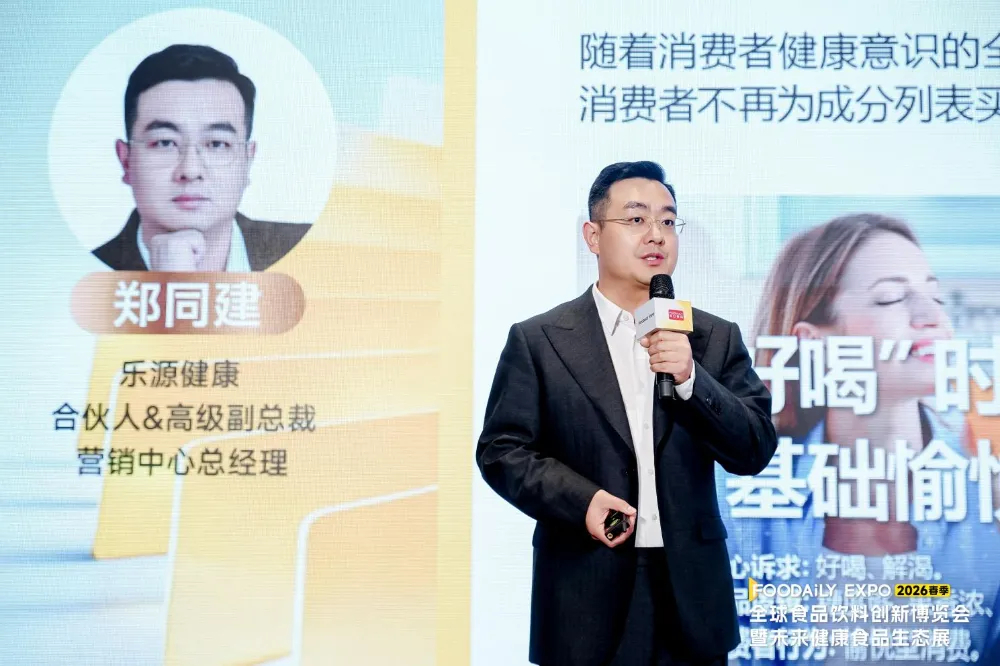 “这几年我们在渠道上还是比较成功的。在线下,大家熟知的沃尔玛、大润发、永辉,他们的自有品牌果汁都有我们的供应。所以大家表面看到的是沃尔玛的果汁、永辉的果汁,背后站着的,其实是我们乐源。”在第十一届Foodaily全球食品饮料创新博览会(以下简称2026 Foodaily创新博览会)饮料创新会议的现场,乐源健康高级副总裁郑同建分享道。