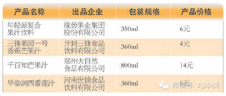 而作为饮料产销大省的河南,这两年也猛刮小品种果汁风。在2014 年春季糖酒会上,河南三锋食品饮料有限公司主推以香蕉芒果汁为代表的多款小品种果汁产品,会期签单量突破500 万元;而河南世锦食品饮料有限公司旗下的芒果、西番莲等热带果汁产品更是突破了600 万元的订单,由此可见,小品种果汁正成为未来几年内越发火热的产品。