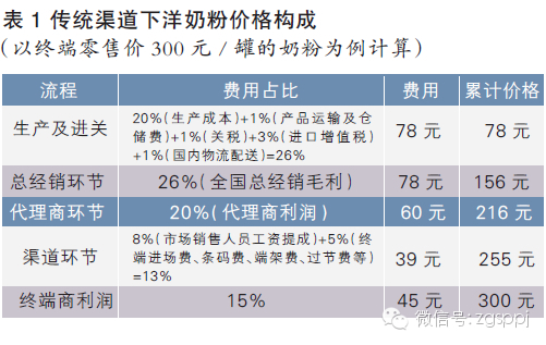 电商到底能节省多少渠道成本?我们可以从表1 的进囗婴幼儿奶粉成本的构成中便可看出: 奶粉进入中国后流通销售渠道的总成本就占到近75%左右。所以在全球的婴幼儿奶粉市场中,我国的售价最贵。电商渠道如果能在上面的渠道成本中砍掉60%,并将此惠及消费者,那么就可以实现中国奶粉市场售价与国际售价基本持平或接近,这也是让奶粉市场回归理性状态的最佳机遇。