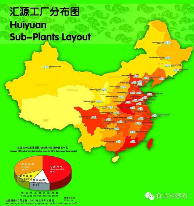 汇源果汁表示,位于湖北和华中周边地区的市场为公司的策略重区。其周边的湖北省钟祥市、安徽省桐城市及江西省九江市的生产基地均能向本地区提供足够数量的产品。