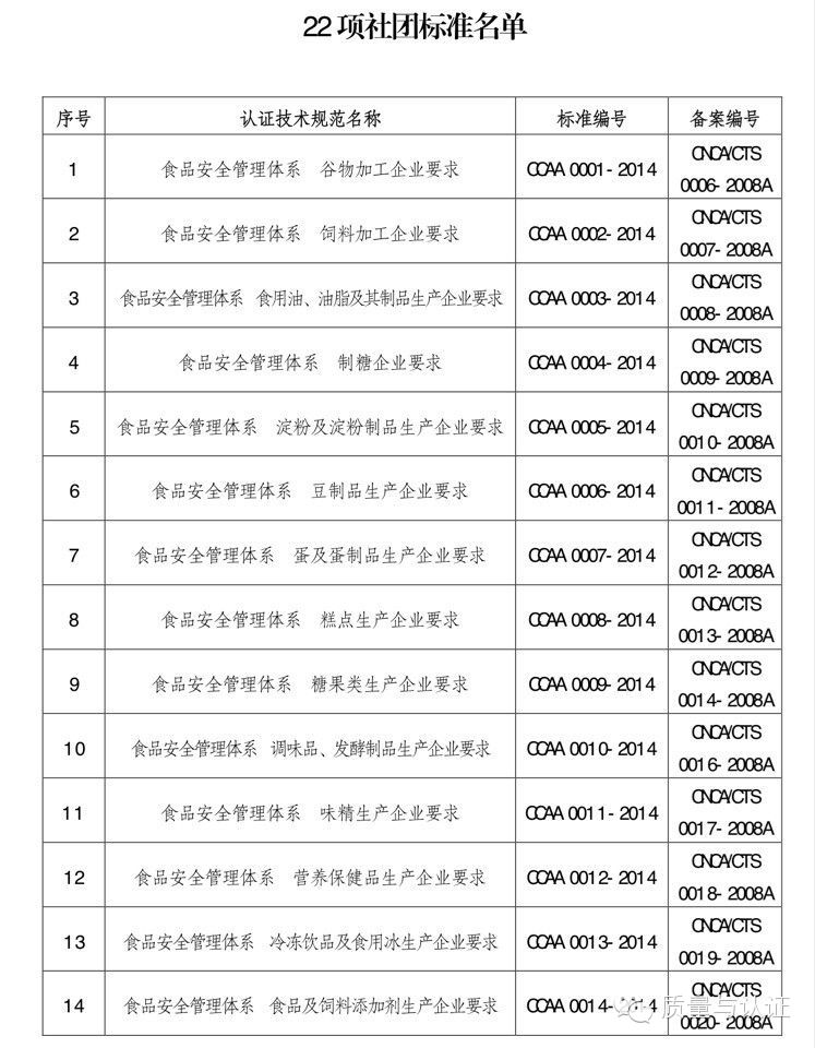 近日,中国认证认可协会发布通知,由协会牵头组织各机构制修订的《食品安全管理体系 谷物加工企业要求》等22项社团标准已通过国家认监委认证技术规范审查,已正式发布。