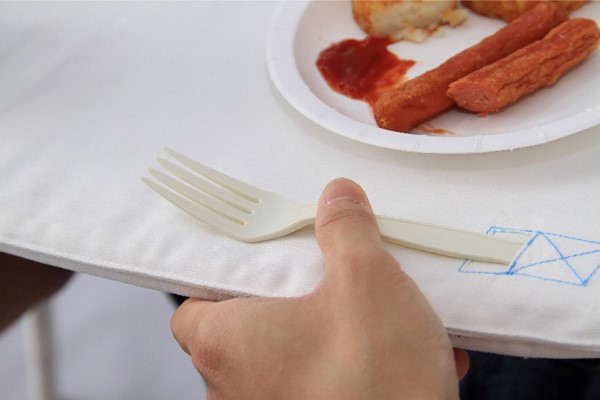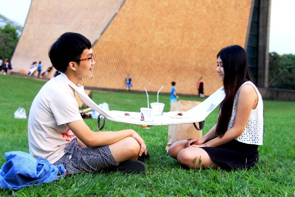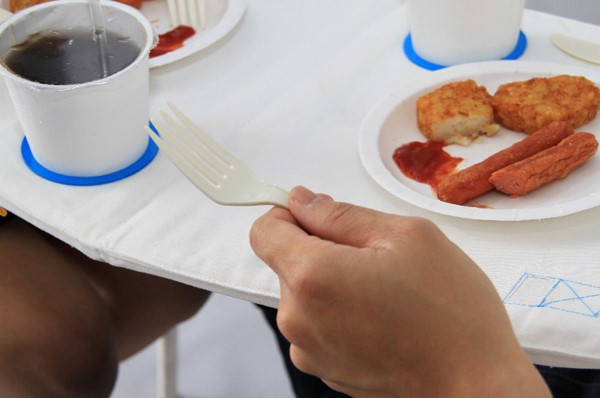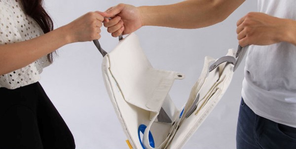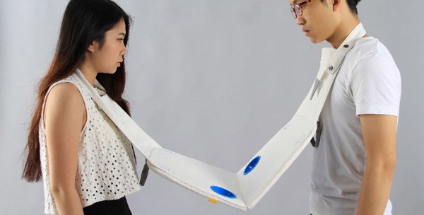 napkin table 是由台湾东海大学学生 Michael Jan 设计的便携式餐桌,以此来鼓励人与人之间的实际交流与互动。它两端的挂绳需要挂在用餐者脖子上,创造了一种餐桌的“不平衡”,从而需要用餐者在保持平衡的过程中进行更多交流。napkin table 中间还特别设计了放饮料、餐具的区域,使用完后折叠收纳即可。