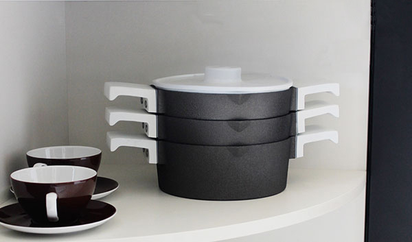 重叠式的设计大大减少了锅具对厨房空间的占用,并且拿取起来也不麻烦,对于厨房空间较小的住户来说,是一个很棒的点子。