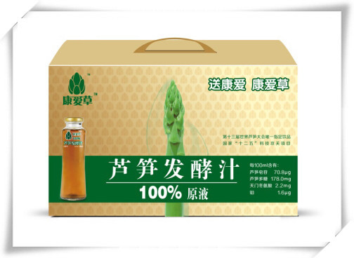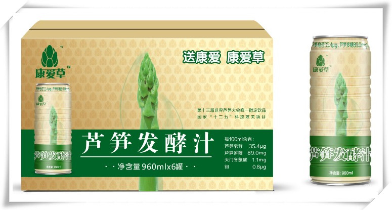 康爱草芦笋发酵汁由菏泽巨鑫源食品有限公司出品,精选农业部授予“芦笋之乡”之称山东曹县的上等新鲜芦笋,历经61小时20分钟通过乳酸菌、酵母菌、醋酸菌三菌发酵技术浓缩芦笋精华,完美诠释芦笋自身的清香、甘甜和多种营养。所有味道全部为生物发酵而成,完全保存了芦笋原有的营养物质,入口清香、回味悠香,是真正的纯天然、健康的益生菌发酵果蔬饮品。作为芦笋行业的领航者,巨鑫源集团已获得多项发明专利并坚持自主创新,康爱草芦笋发酵汁的诞生,是世界芦笋行业新的里程碑。