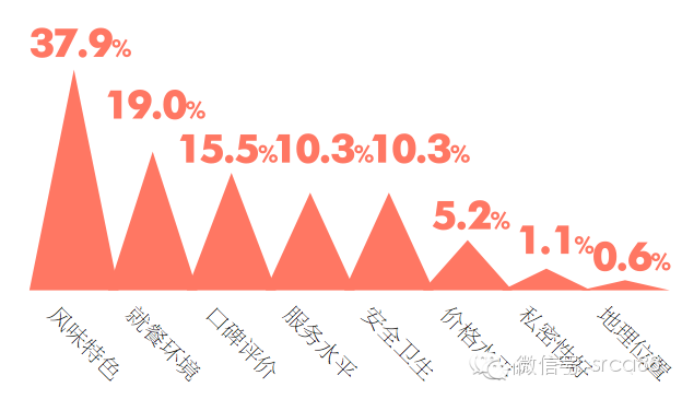 分析:口味与氛围是最食客最为关心的就餐因素,无疑味道是最为核心的竞争力。口碑、服务以及安全卫生是检验餐厅长久性的软性旗帜。