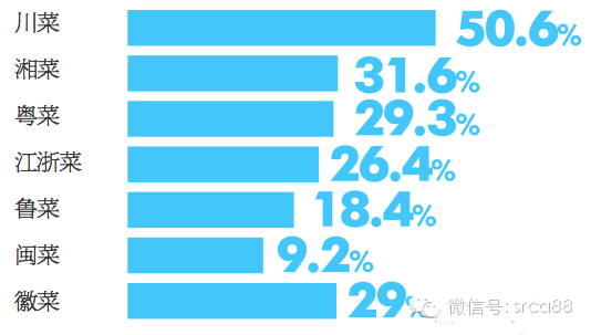 分析:食客对辣的痴迷,对浓厚口味的追求,直接显现在食客对菜系的选择上。
